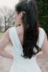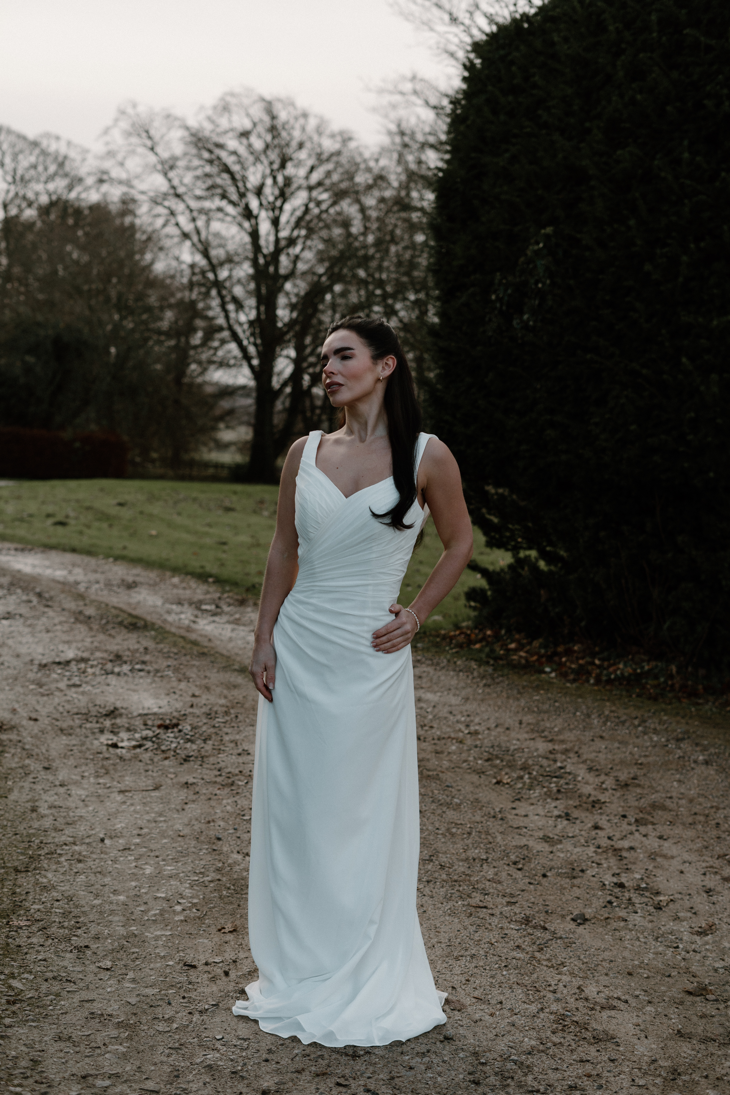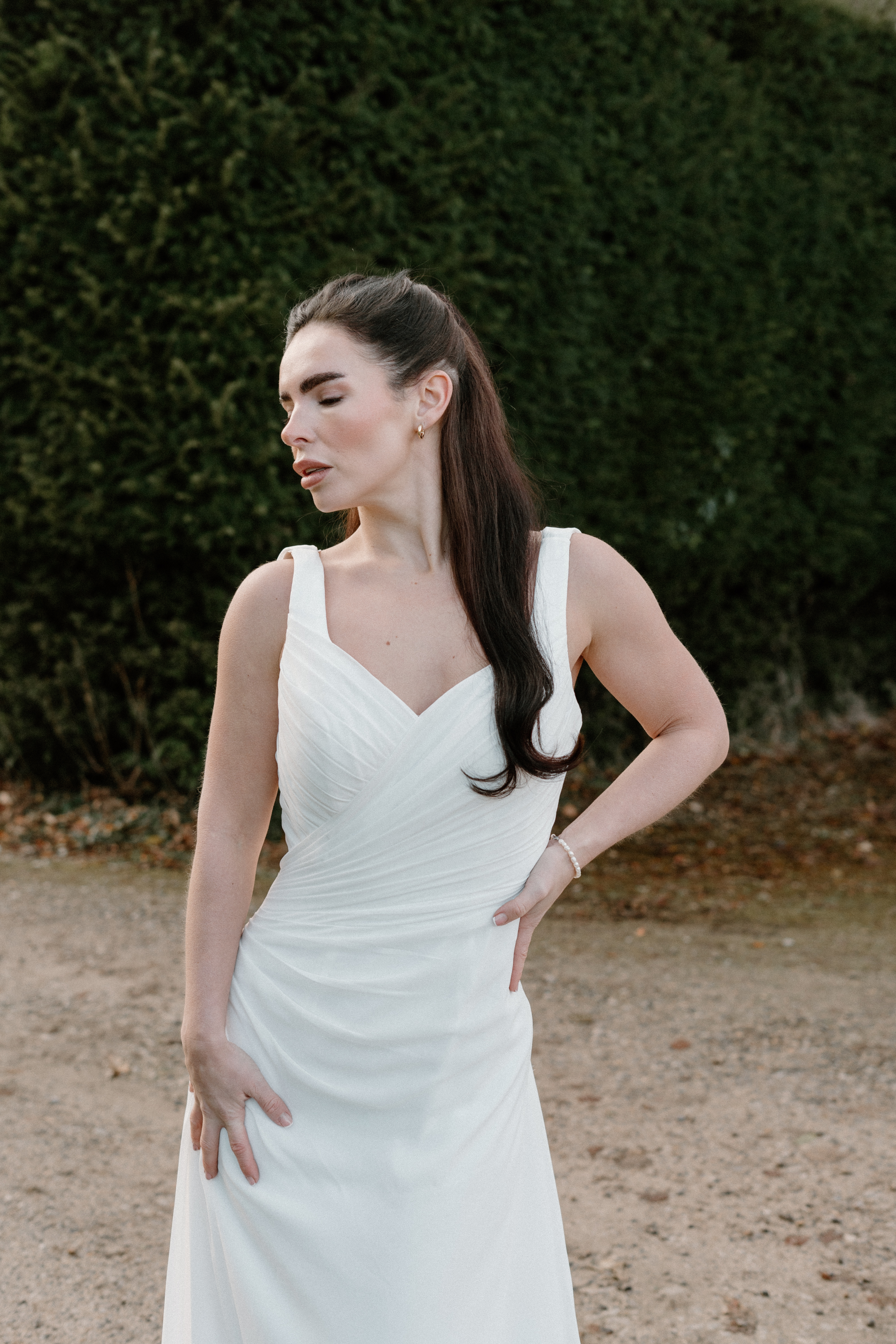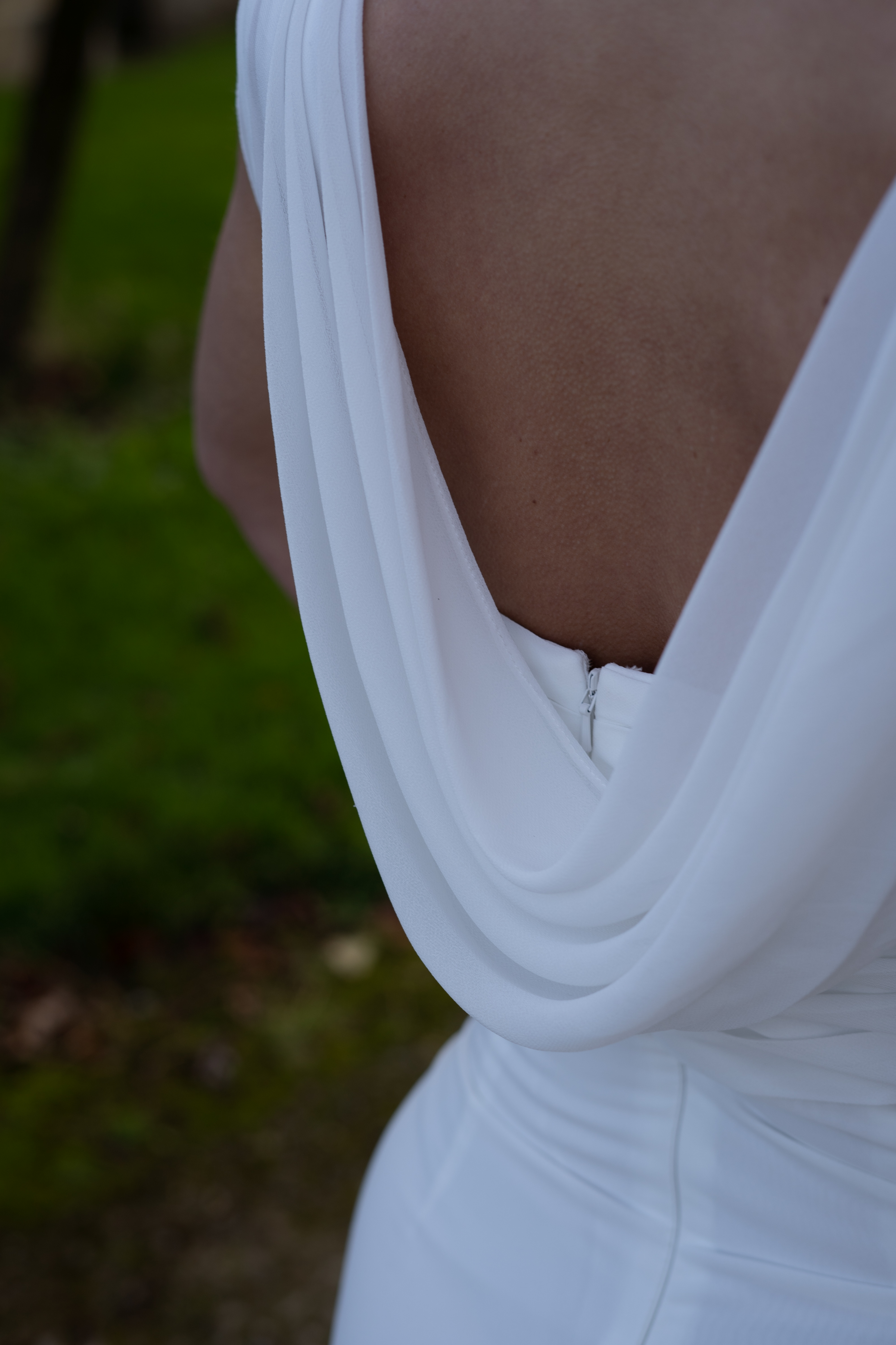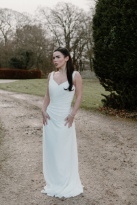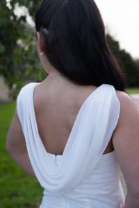 With the soft cowl back, Aspen's style is perfect for a beach ceremony or woodland wedding !