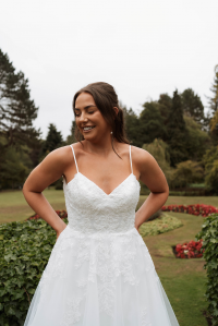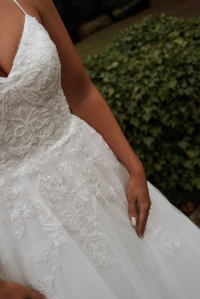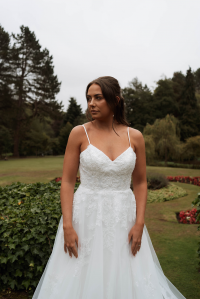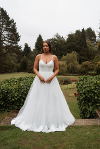 This beautiful princess gown has a simple yet flattering A-line shape.
