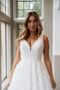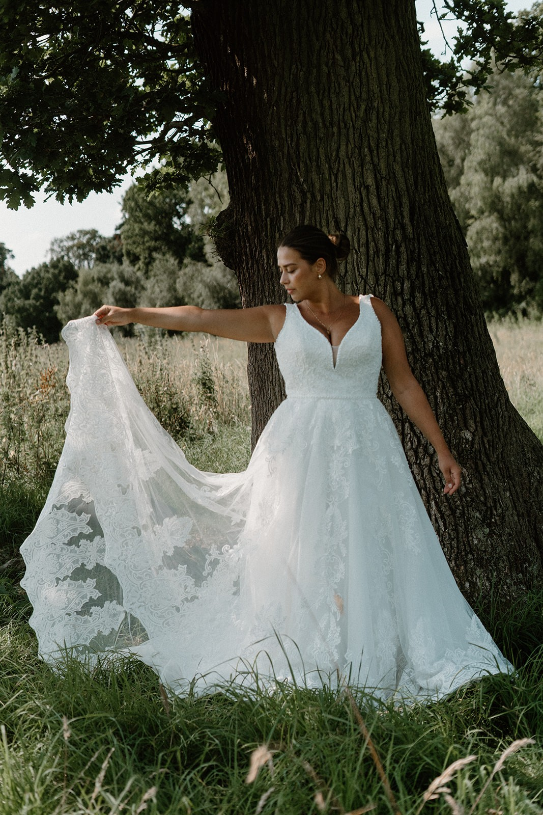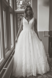 This gown is available in stunning traditional ivory, or in mocha to pick out the detail on the lace.