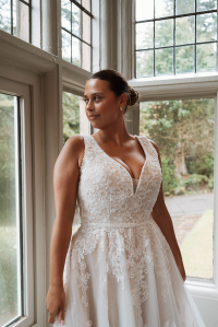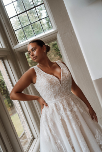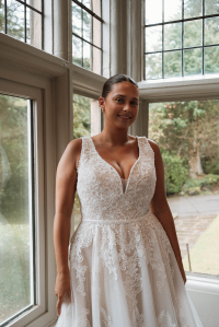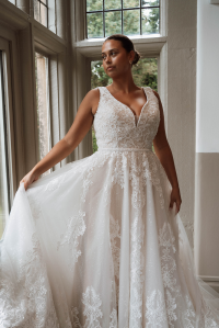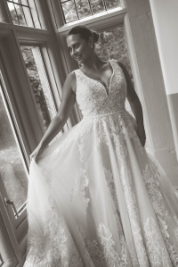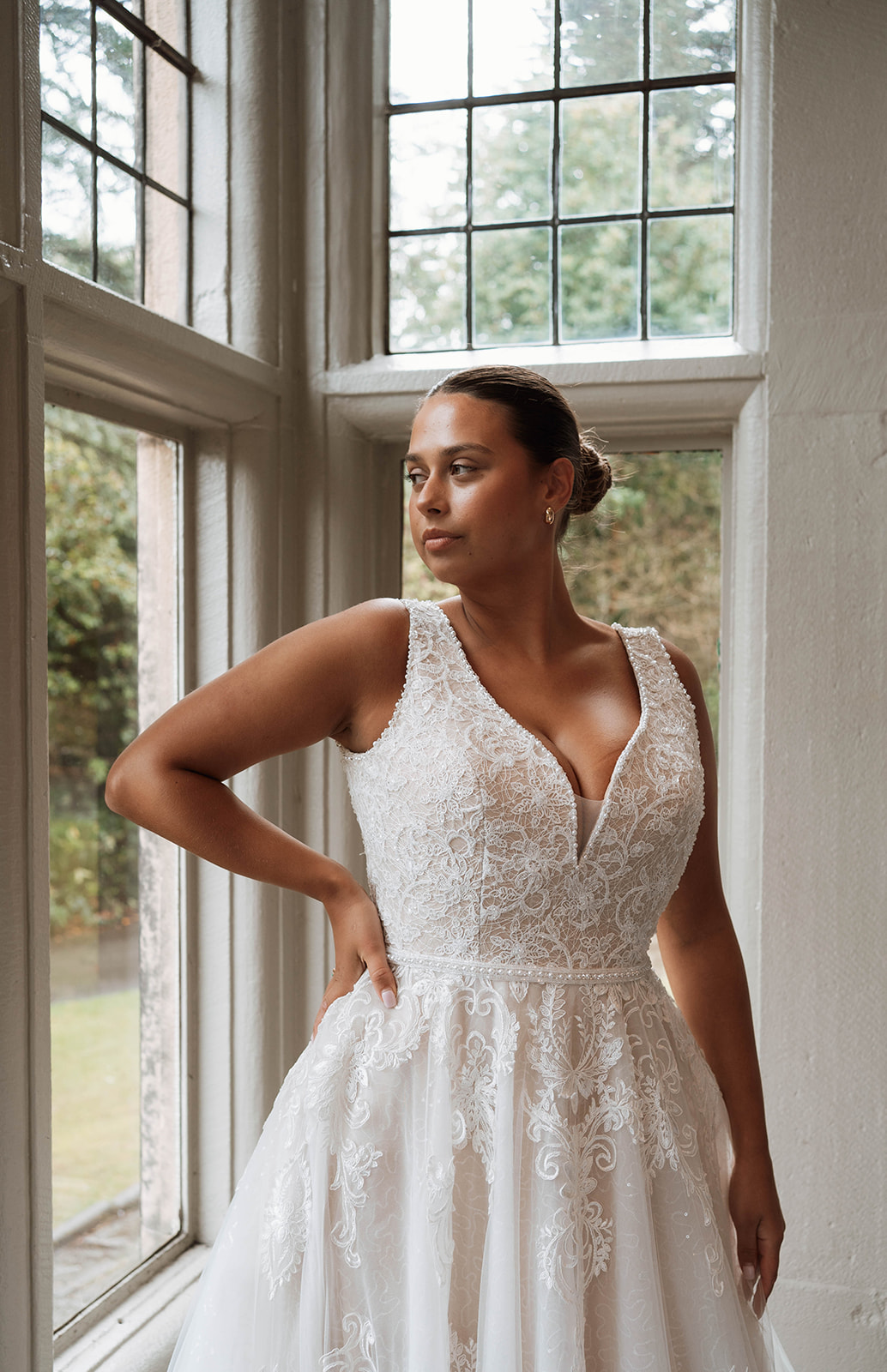 This gown is available in stunning traditional ivory, or in mocha to pick out the detail on the lace.