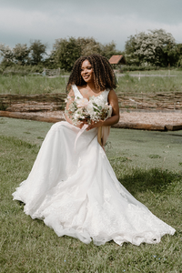 This gown is available in stunning traditional ivory, or in mocha to pick out the detail on the lace.