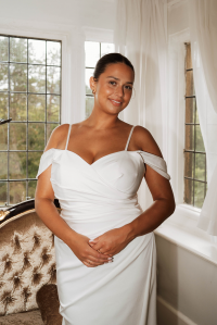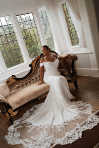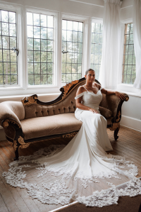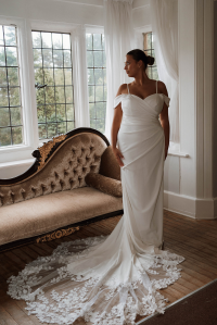 Simple and sophisticated, the WD171. A firm favourite for every style of bride, this timeless gown effortlessly combines elegance and modernity. The elegant lace train enhances the simple yet flattering silhouette with an added touch of beauty. Whether you're planning a grand ballroom affair or an intimate garden ceremony, the WD171 is designed to make you feel unforgettable on your special day.